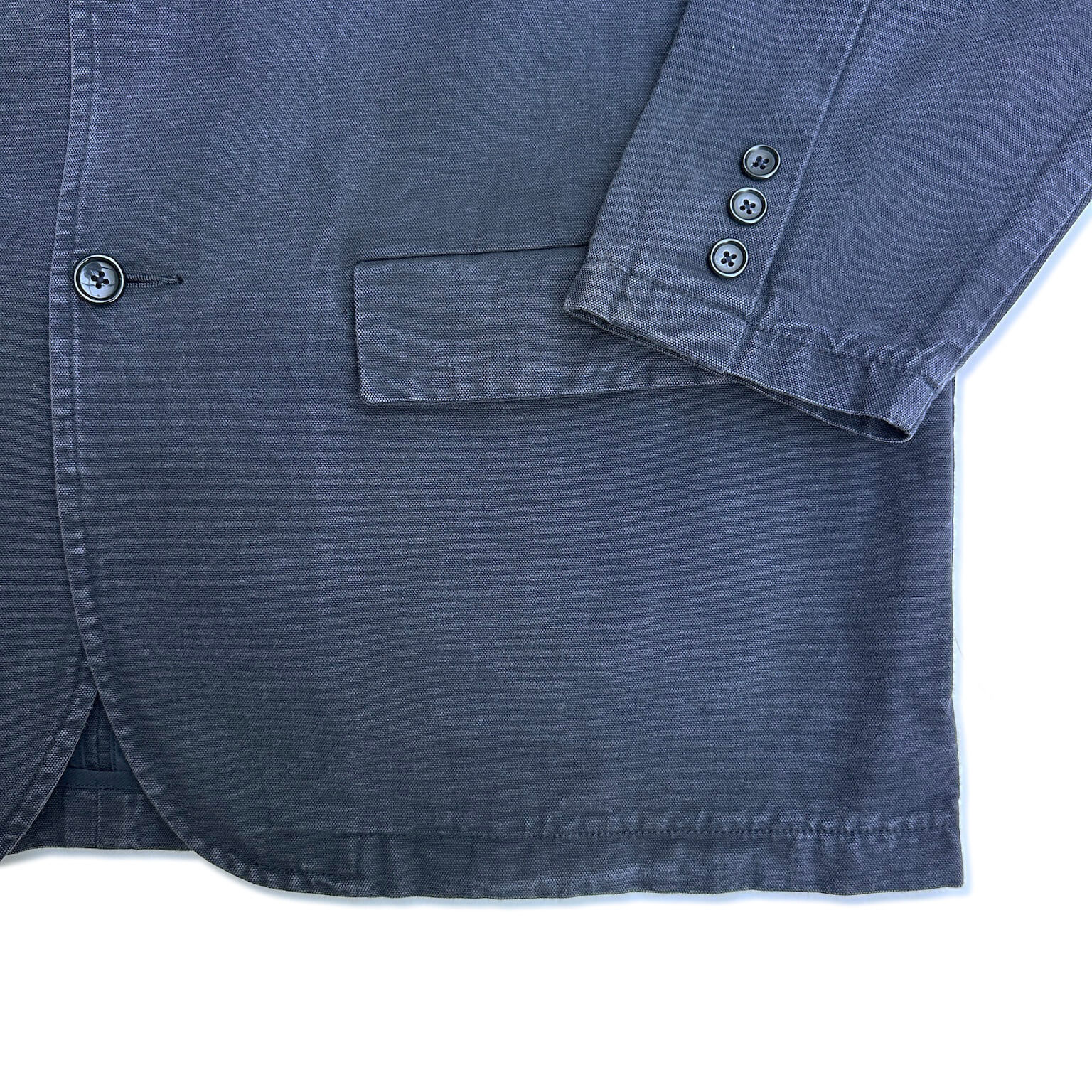 キャンバス生地を使用した3つボタンのジャケット。