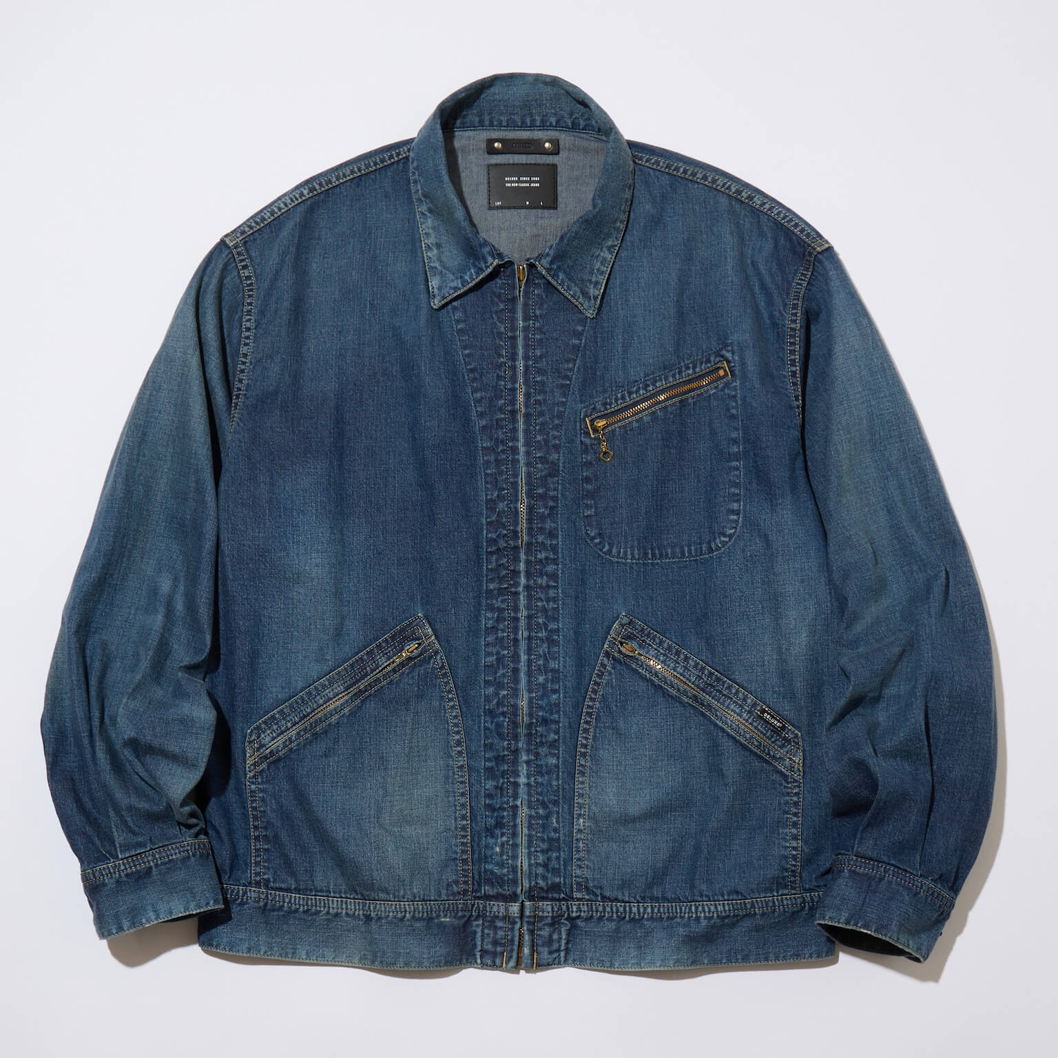 ライトオンスデニムを使用したジップアップワークジャケット。