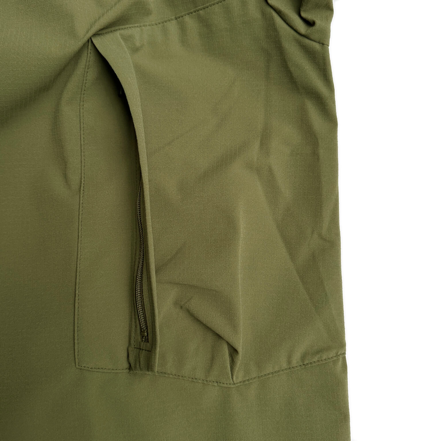 随所に切り替えを取り入れ、また脇下作用うに配置したポケットは使いやすさを考慮したデザイン 右裾にリフレクターネームを叩きつけ。